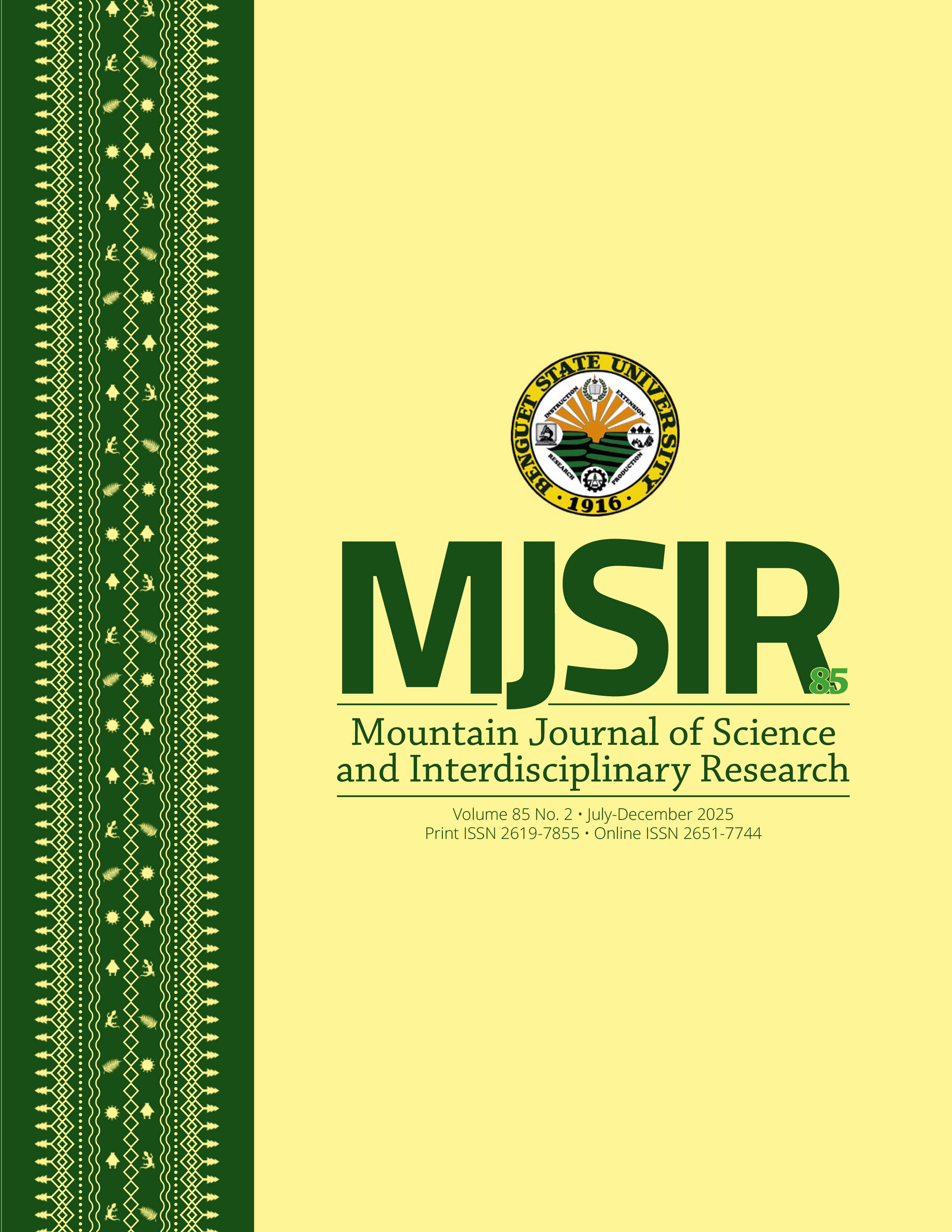 The Mountain Journal of Science and Interdisciplinary Research (MJSIR), formerly BSU Research Journal, is an open access, peer-reviewed journal published biannually by Benguet State University. This multidisciplinary scientific journal publishes research from across all areas in agriculture; forestry; fisheries; environment and natural sciences; social science, arts and humanities; education; information and communication; industrial technology; extension and rural development; indigenous knowledge; and gender and development.